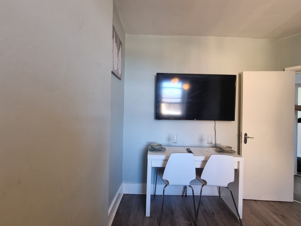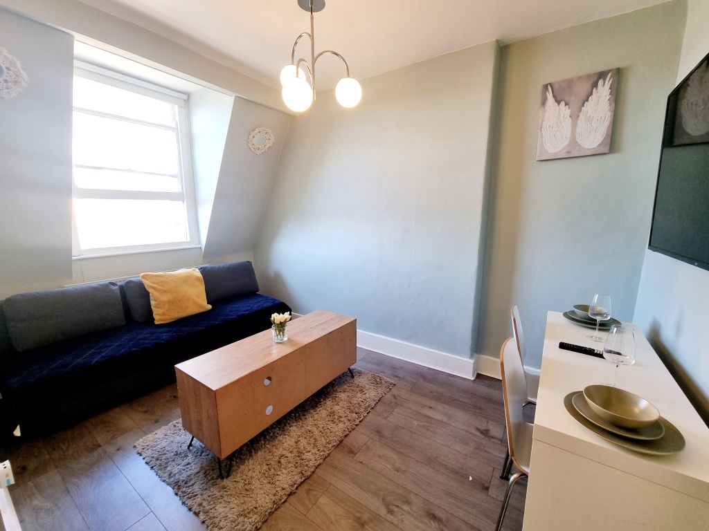 The flat benefits from a fully equipped kitchen, living area, and family bathroom consisting of a shower and toilet. The flat also contains cutlery, crockery, pots, pans, glasses, mugs, utensils, a kettle, a toaster, an electric cooker, a refrigerator, a hairdryer, an iron, and an ironing table.