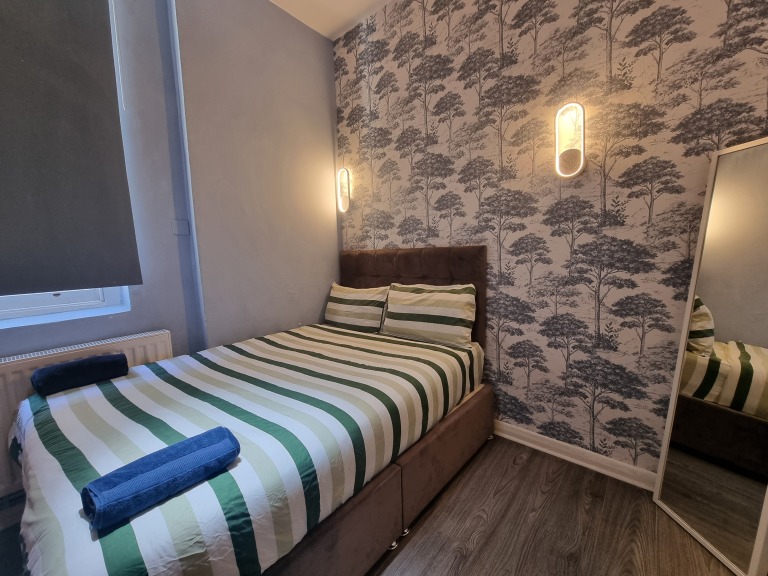 The flat is located on the ground floor and benefits from 3 bedrooms, each of which consists of 1 double bed.
